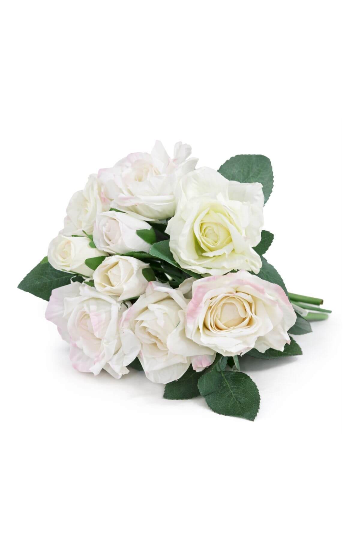 Bílá kytička růží s růžovým odstínem s puky