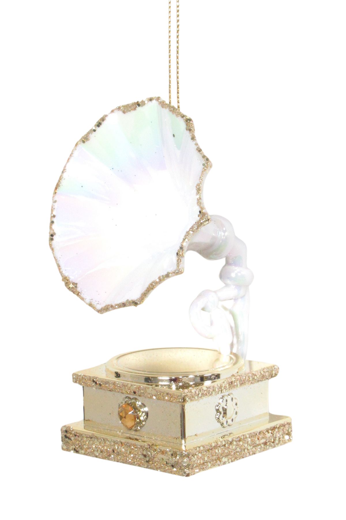 Bíle zlatá vánoční ozdoba gramofon 11cm
