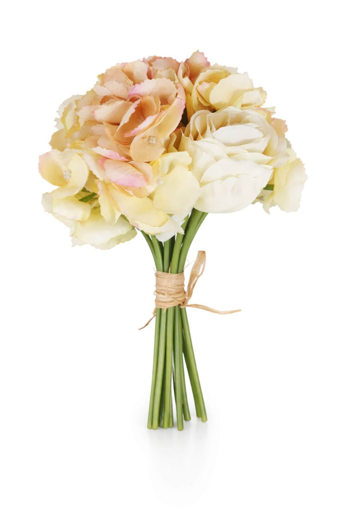 Bledě žlutá umělá kytička hortenzí s růžemi 27cm