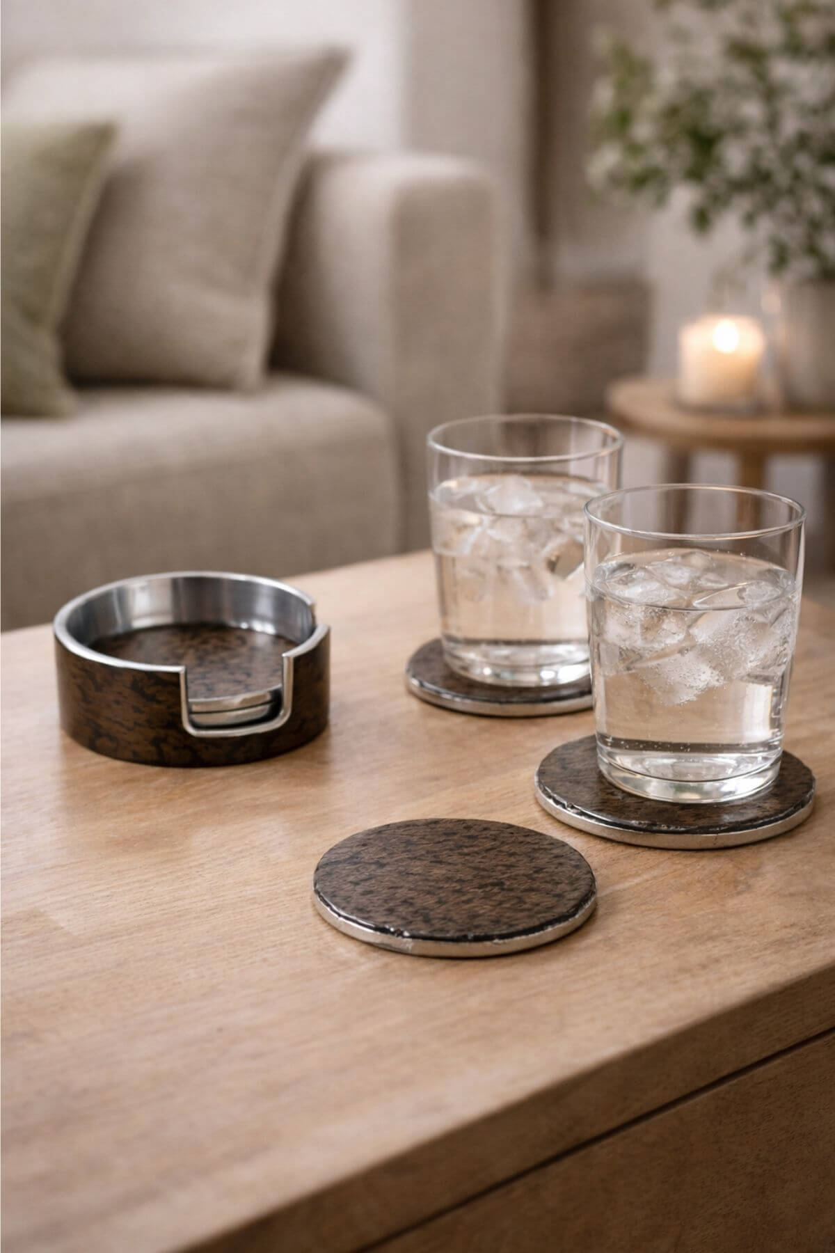 Hnědé loupané podtácky jsou díky svému designu nejen praktické, ale také velmi pěkným doplňkem moderních interiérů.