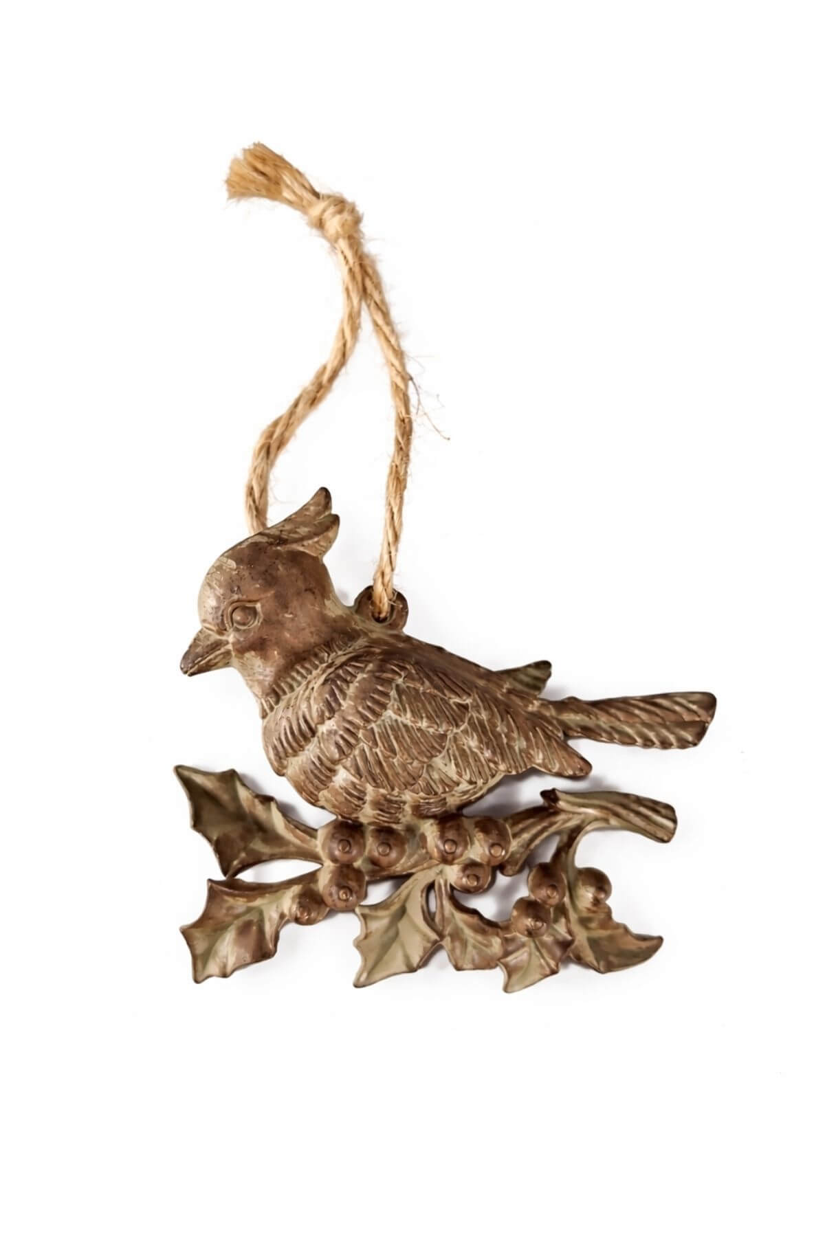Hnědý patinovaný závěsná ozdoba ptáček 10 cm
