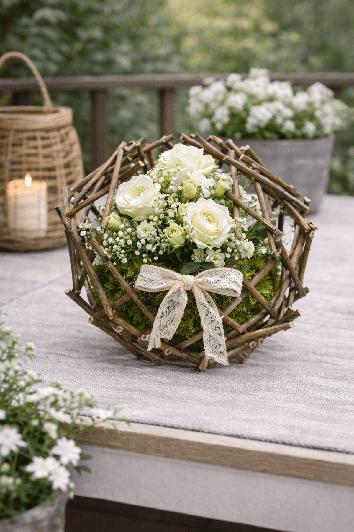 Hnědý přírodní tvarovatelný obal z větviček , který lze tvarovat, protože na spojích jsou malé karafiáty. Vhodné k aranžování
