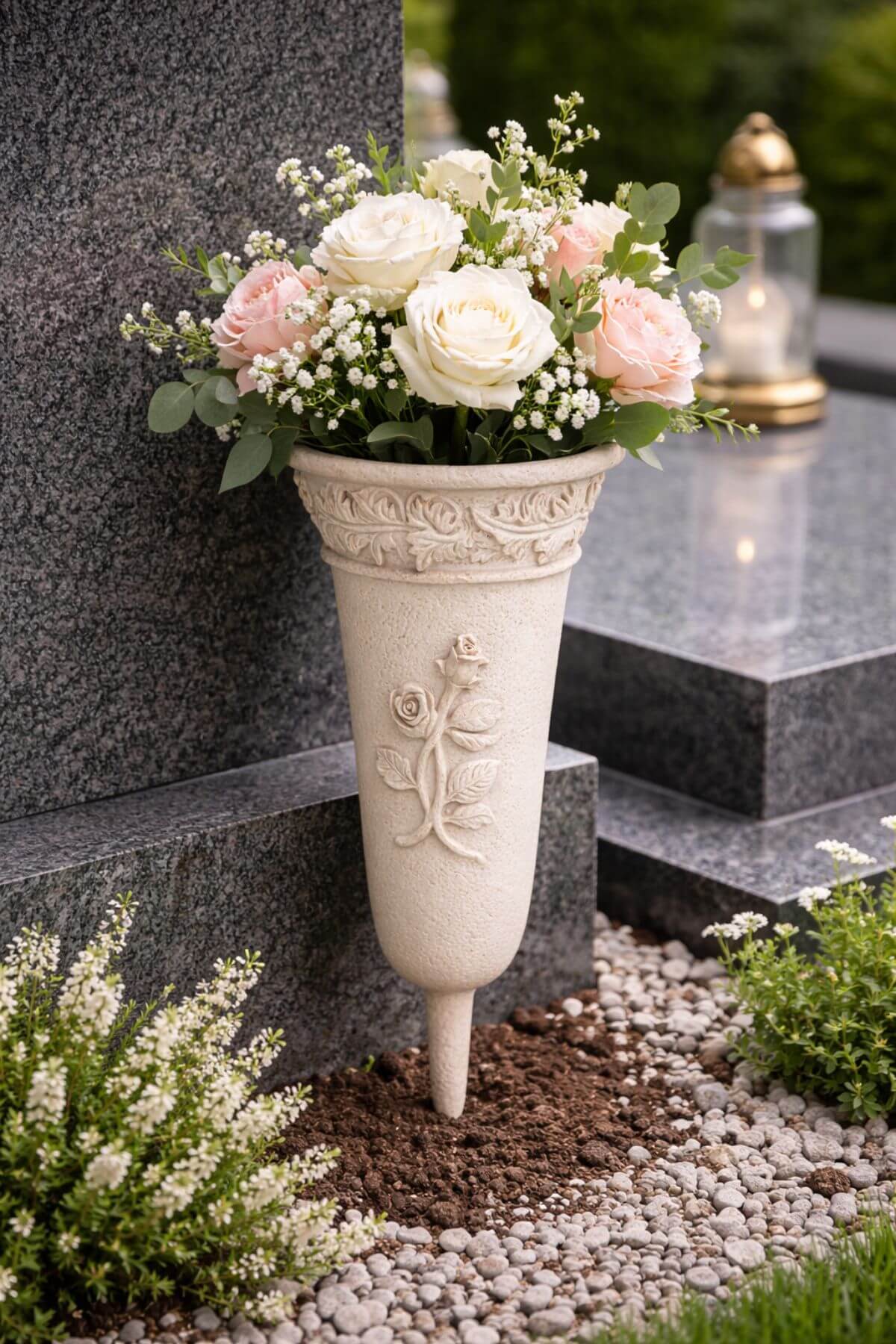 Krémová lehká váza vhodná na hřbitov 35cm. Váza je vhodná pouze na umělé květiny