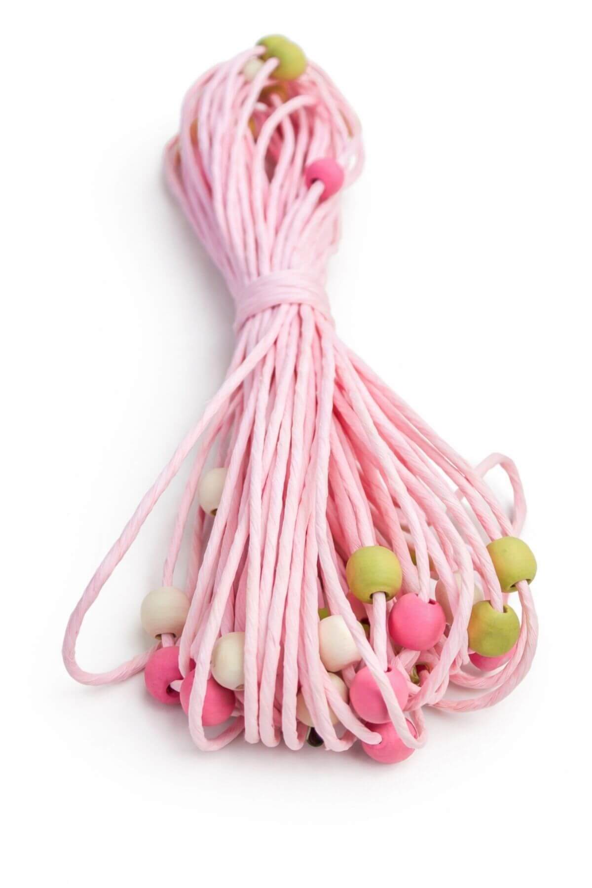 Růžová kroucená šňůra vhodná k vázání kytic, dárků, macesů z růží apod.