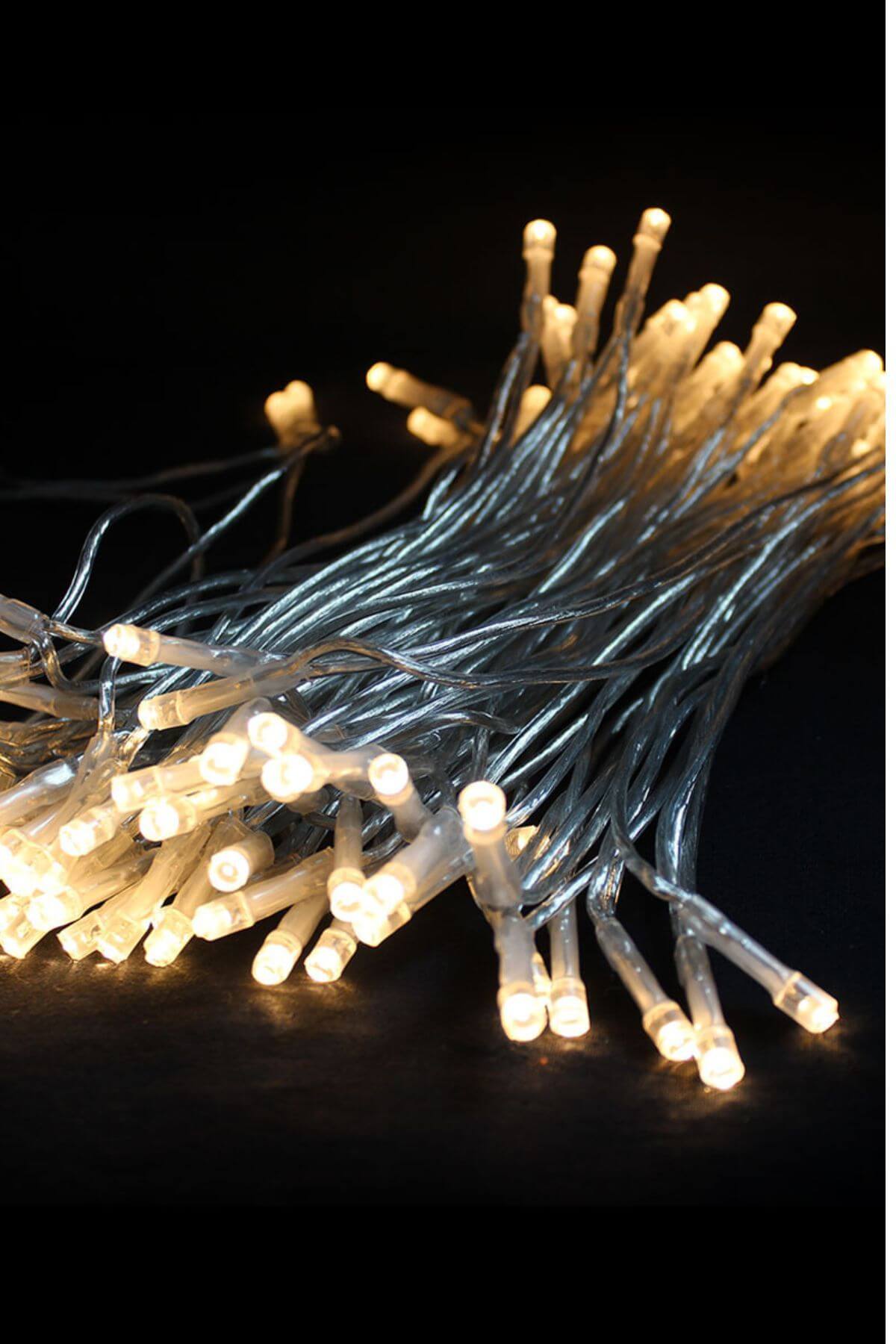120 LED světel je umístěno ve vzdálenosti 10 cm od sebe. Napájecí kabel je dlouhý 50 cm.