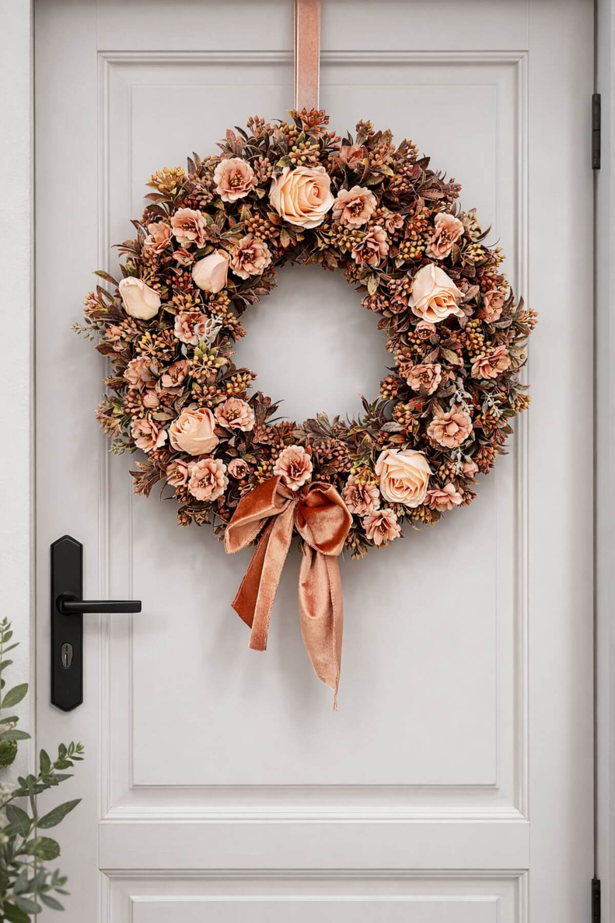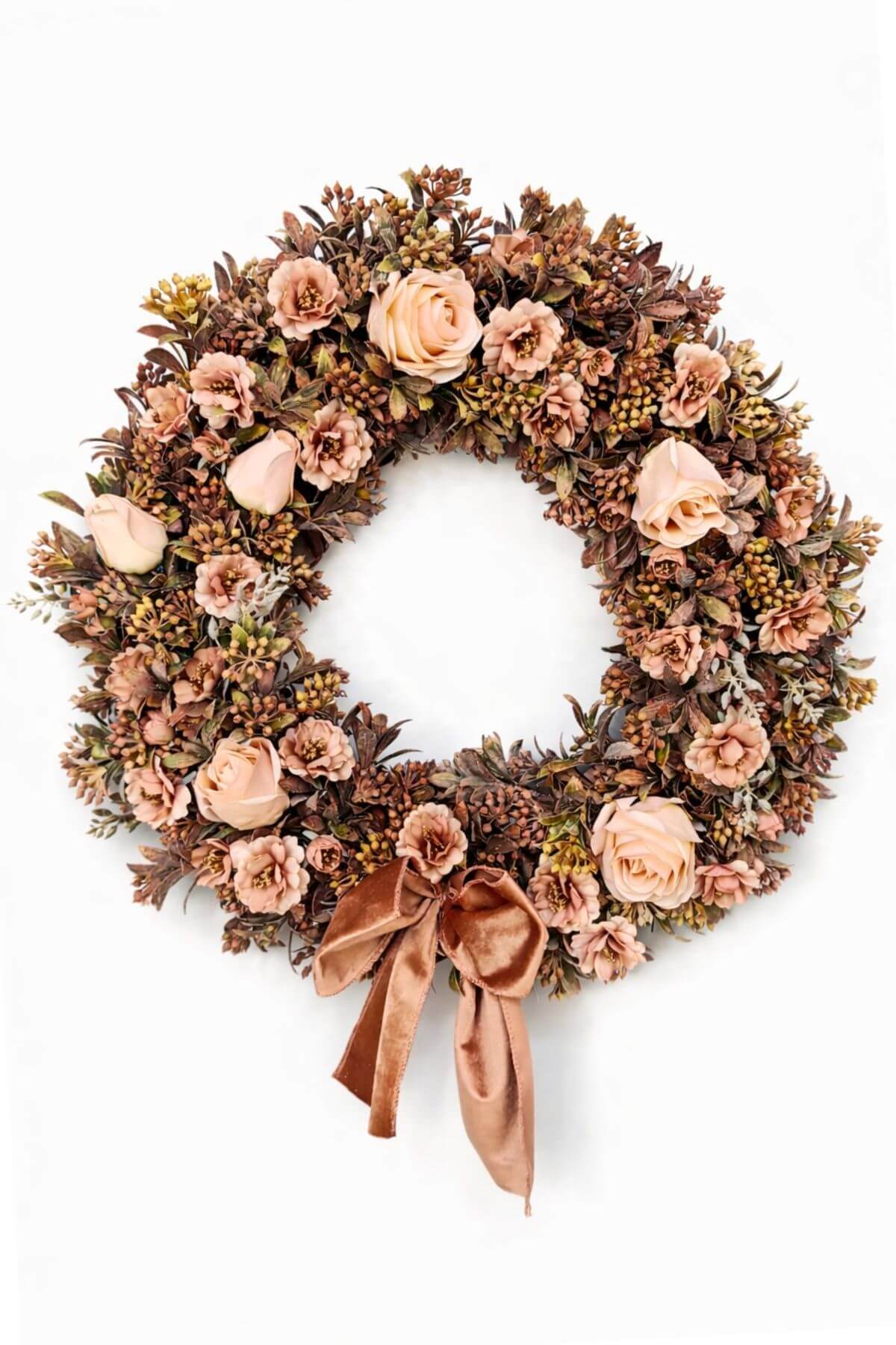 Věnec v krásné lososové barvě může být krásnou dekorací v jarním a letním období, nejen v interiéru, ale můžete jej zavěsit i na vchodové dveře vašeho domova, hotelu, kavárny či restaurace.