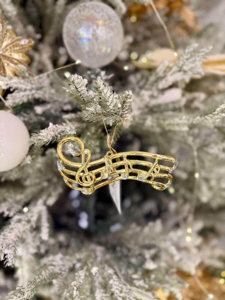 Dodejte vašemu vánočnímu stromku luxus a eleganci s touto krásnou vánoční ozdobou ve tvaru notového zápisu. Detailně zpracovaná ozdoba je velmi pěkným doplňkem na váš vánoční stromek, věnec nebo girlandu.